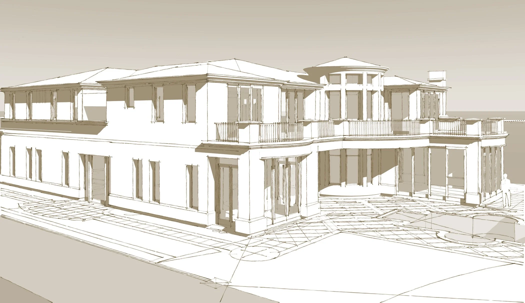 Opening up the South elevation with multi-panel sliding doors radically improves the view and, with the addition of new second floor terraces, opens the house to the gorgeous coastal weather. The kitchen and primary bathroom are reconfigured to improve the flow of the spaces and bring the house up to date with new luxury finishes.